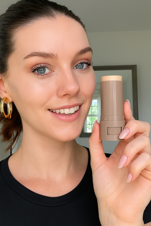 Simply twist out the balm, swipe onto your face, and blend with fingertips or a brush. No mirror needed!